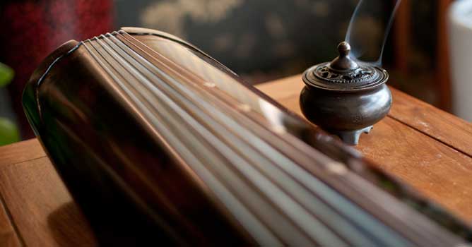 古琴是一种器乐,以其声音为最终考量标准,不出现打板、沙音、抗指以及徽位不准是一项基本考核标准。但在实际的选琴过程中,我们最方便也最直观的方式就是逐个弹试测音,不用担心完全不会,用手指拨弄琴弦,声音纯朴、苍劲,特别是在几个古琴音色的对比中,我们往往可以从中挑选出最适合自己品性的那一张古琴。